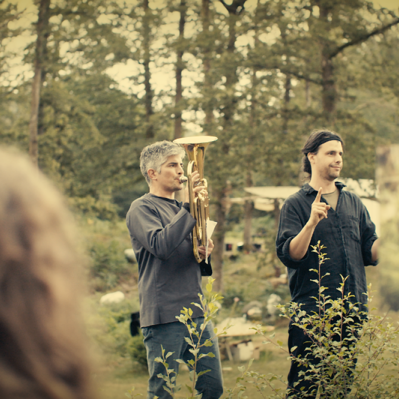 Le monde végétal porte en lui un véritable endroit de perméabilité entre le réel et le fantastique. Avec L’envers de mousses la compagnie invite les spectateurs à une expérience collective et sensorielle de la tombée du jour à la nuit. "L’envers des mousses nous ressemble, en plus végétal. L’envers des mousses a toujours été là, sous les mousses, sous l’humus, partout (...) L’envers des mousses, c’est un peuple vivant né en même temps que l’humanité, une peuplade tranquille et douce qui vit dans l’ombre, cachée."